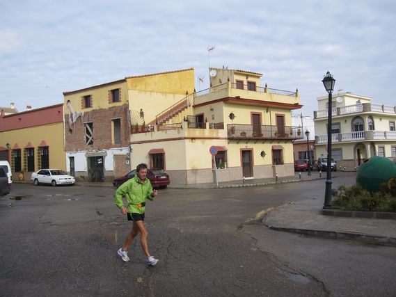 After the fog, rain and bright patches and huge cloudbursts deluged the roads of Andalusia. Houses don’t have gutters and the roads don’t have rain sewers so the water from the roofs and sidewalks runs in the gutters along the road to make what looks like a duck pond. Because of this there could be danger of flooding if it weren’t for the fact that the rain fall in this region of Europe is very low.