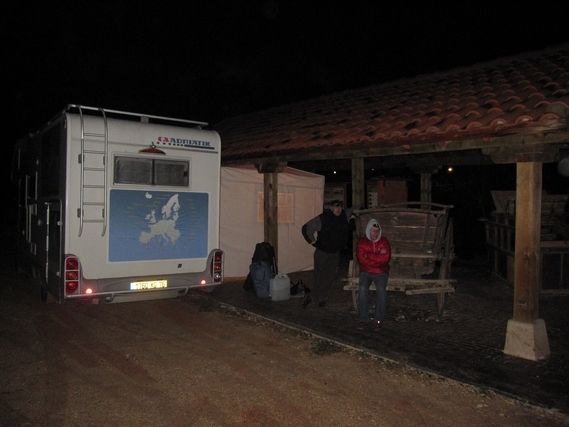 The night wasn’t terribly agitated. At 11:55PM on December 31st the alarm went off . Serge jumped into his clothes and was ready in 3 minutes, wristwatch on and the beacon charged. This morning at 6:25 it takes him three times as long to get out of his nice warm bed (the temperature in the camper is only 5°C). So, at midnight he wakes up at the same time as the fire crackers and fireworks at the top of the village. He shouts “Happy New Year,” wakes up everybody and takes off on his nocturnal run, accompanied by Philippe (with his video camera) who does not want to miss this event. The “Dupondt” and I don’t move from the warmth and take our time eating our 12 grapes; I think this Spanish custom will be exported to our homes next year.