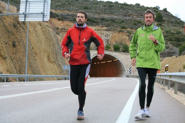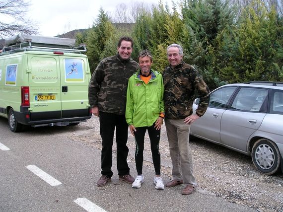 As Joël pointed out this afternoon, it hasn’t rained since the beginning of the year, except for 2-3 drops which we won’t even mention because they aren’t enough to wet our feet. Sergio, a Spanish runner from Burgos, who is visiting his parents, was able to find Serge thanks to the beacon (it won’t be long before I will talk to you about this fabulous method of tracking) and we realize that it is very helpful for people who wish to run for a while with Serge. He arrives at the end of the stage, at Km 55, and explains that he has never seen such an awful month of December. Christian, an Alsatian, confirms that 15 days ago the roads in the area were blocked with 30 cm of snow. So we are lucky.