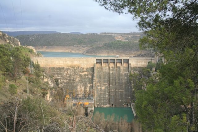 Today we pass through the lake district of Sea of Castile. There is a nuclear power plant in the distance and we see some tags in protest. There is a dam and artificial lakes which collect water from several rivers: the Tage, the Guadiela, the Guadamagiud and the Mayor. The color of the water is turquoise, verging on emerald, depending on the color of the sky. We go through 3 tunnels on the N320 to reach Sacedon.