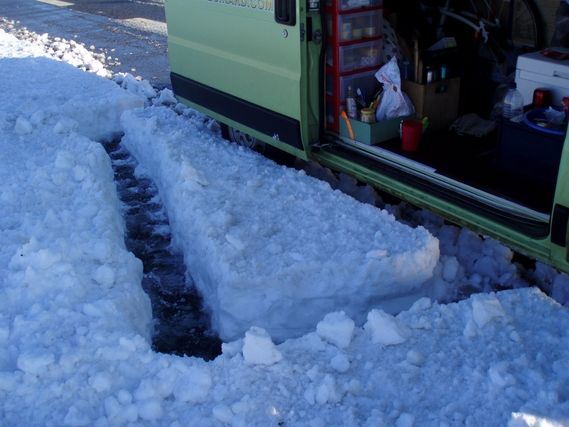 It was not an early morning departure in order to leave in daylight. Serge is off at 8:30 under a clear sky and a temperature of -12°C. The sun rises and Ax-les-Thermes wakes up with a few skiers on the slopes. It’s strange to hear French spoken after all this time. And even if there is a customs post between Andorra and France, we go through without hindrance. Yesterday, Serge went through alone, on foot, without backpack but it didn’t keep the zealous customs officer from asking him if he had cartons of cigarettes to declare. Since a carton of Marlboro costs only 22€ there must be a lot of illicit traffic. Diesel fuel is also very cheap: between 0.86 and 0.89€ per liter.