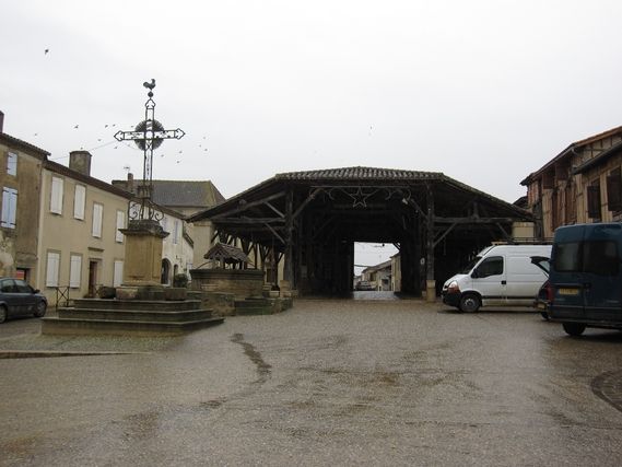 At km 20, it starts to rain and doesn’t stop. Serge changes his gloves 3 times, the frogmen followers are back and the umbrellas in use. We are now in the Gers, a rural department with magnificent villages: Marciac (known for its international jazz festival), Bassoues, with its ancient market and keep. The D943 leads us away from the snow capped Pyrenees Mountains, but is seems that when the weather is clear they are still visible.