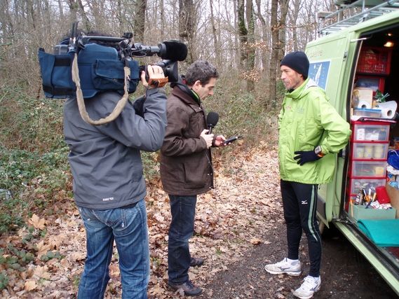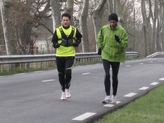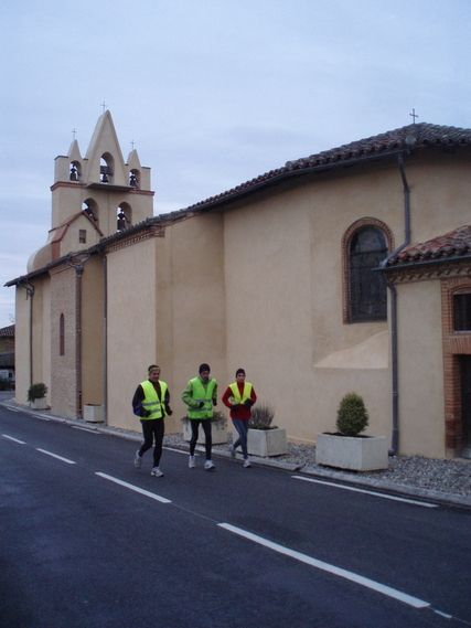 A modest start at Samatan. Serge does not feel well, he has a stomach ache. 3 runners are here: Gaël, Corinne and Didier. Serge isn’t sullen but he isn’t talkative because he is absorbed by his pain. He excuses himself for not being more communicative with his fellow runners.