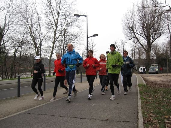 Then Philippe joins Serge before Saint Clar de Rivière and at Seysses: Evelyne and Nadia. There is a meeting scheduled at 4:00 PM at l’Ile Ramier near the casino. Serge arrives 20 minutes in advance and takes the time to rest before taking to the road with at least 10 runners who are not affected by the rain.