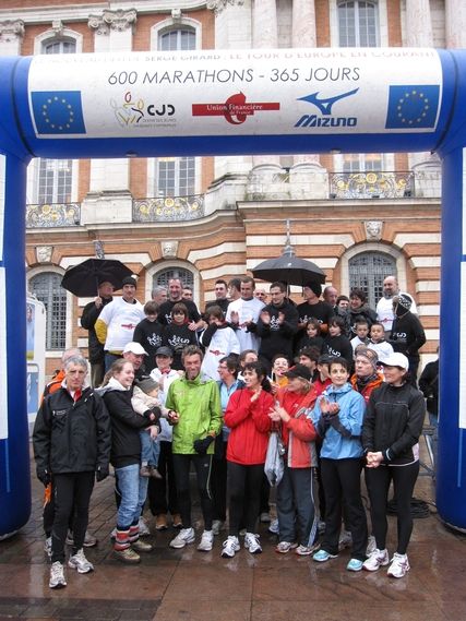 2 quick glances at the day: Patrick, who ran with Serge last Sunday when he crossed Foix, is back, while his wife shops the sales. From Fieu, the Rambaud family, Alain and his tribe, have actively followed us since the start of the race; first a visit in Caen, then an organized crossing in the Gironde Department and now this visit in the “Pink City.”