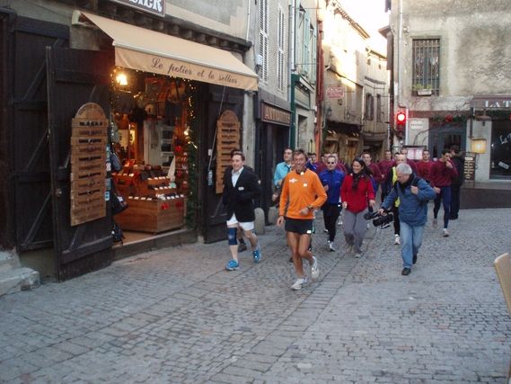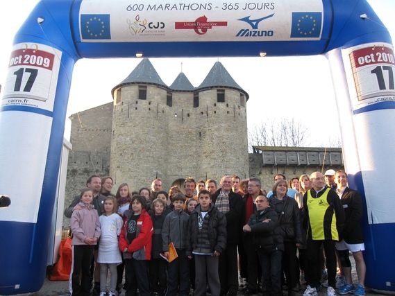 At the doors to the city, a group of children, the mayor and the president of the Community of the Agglomeration wait impatiently for the runners to arrive. Then the children accompany Serge to the counts’ castle, where we can talk because a small reception has been organized inside. Thanks to the whole CJD team of Carcassonne that worked to organize this magnificent arrival. Serge is spoiled because when he leaves his hands are filled with the city’s medal, presented by the mayor, and two bottles of wine from the CJD. We have enough from the territories crossed to ensure a gastronomic evening!