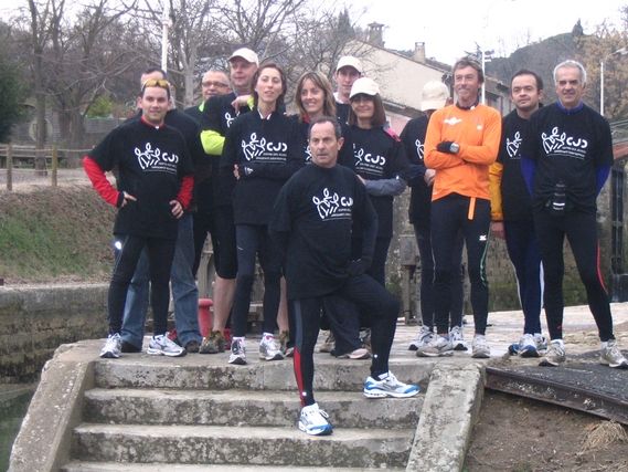 At 2:30, at km 65, there is a second meeting with the team of Jérôme Montane, of the CJD of Béziers. There are 4-5 runners, among whom Francis, who are there to guide Serge on the last 18 km. The group gets bigger at the locks of Fonseranes. It is worth mentioning the presence of Jean-François BANCK, a regular runner and especially of 100km events (winner of Millau in 2001, of Royan in 2005 and of Samatan in 2008). He will be with us tomorrow to run the entire stage to Montpellier.