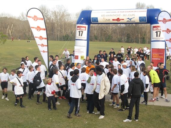 David accompanies Serge for the entire stage and he reaches Aix tired but happy. Jean-Louis from Marignane and Stéphane from Le Tholonet also accompanied today’s two runners. At Eguilles, a motivated group is waiting for Serge: our partners from UFF and CJD and also the deputy for sport for the city of Aix, who runs a few kilometers. The AUC (Aix University Club) is involved in the organization of the finish and has mobilized a large number of children and opened its facilities. This association groups 16 different sports and has 3,500 members. In this context, sport is king.