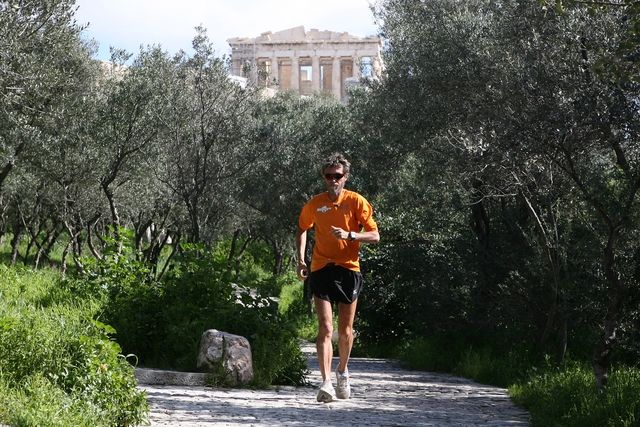 It was a brisk entrance into Athens by a runner who says all his good feelings about running have returned.