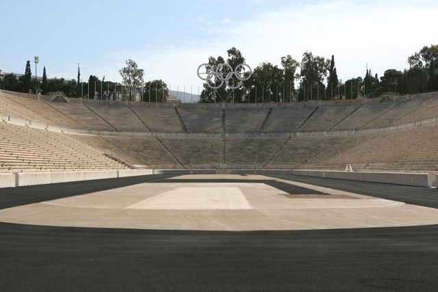 All this beating around the bush takes 90 minutes, before we get to the ancient Panathenaic Stadium, known as Kallimarmaro, which means the “beautifully marbled,” because just as the Parthenon, this stadium was built entirely of marble in the IV century BC. It was refurbished in 1895 by a wealthy ship owner for the 1896 Olympic Games. The stadium is 200 m long, and like all ancient stadiums is a long rectangle. In the 2004 Olympic Games, the archery events and the arrival of the marathon took place here. The annual Athens marathon, which starts in Marathon, finishes in this gorgeous stadium. In a completely different style, there is the stadium to the north west of Athens, which was built in 1982 and completely renovated for the Games in 2004. Serge was not far from there but he was more intent on talking with Géraldine and Melissa than on seeing the stadium and kept to his route toward Kefissia, where other runners took up the relay. These relays were planned by Jean-Pascal, a French expat. Serge is happy to share the kilometers, which speed by because everyone is running and of course talking and Serge takes a fall, thanks to an uneven sidewalk, but luckily was not injured. Ascending to Ekali, the clouds gave us showers, and then the sky clears as we descended toward the sea at NeaMakri.