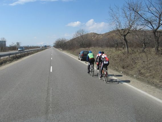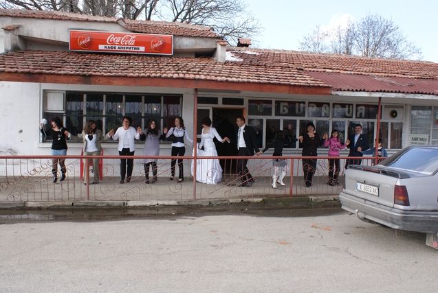 Coming back to today in the year 2010, and more precisely this 13th of March, Serge is happy at the end of his stage because he made up the time lost in Sofia and finally passes the bar of an average of 71.9km per day. Something tells me that his objective is to reach 72 km/day, and as the days go by, the average is lost in the number of days, hence the difficulty to move the decimals, in one direction or another! To close this long log, at the end of the stage, the team sees a wedding where there is a farandole (an open chain dance). Serge arrives too late; otherwise he could have danced with the young bride and groom. Weddings take place on Saturday, like they do in France, but here there is a lot of dancing and mingling with the guests, even foreigners.