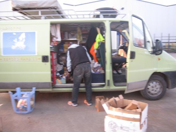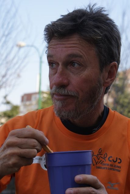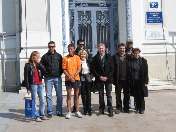 The sun is shining in Romania and our hearts are in our job. Serge moves at a good pace all the way to Pitesti, where we are to meet in front of the town hall. At 12:15 a small group is waiting for Serge and the team and the mayor presents a book on Pitesti as a gift. We learn that this city of 200,000 inhabitants bears the name “The City of Tulips” since 2008 and organizes an important event know as the “Tulip Symphony”. Serge continues along an unpleasant road toward Calibasi, the location of the Dacia factory. It is 2:30, time for the change of workers, and the bus brings the employees who will start their “shift” from 3:00 to 11:00 PM. The platform of the Romanian Dacia group was bought by Renault and completely renovated. 12 to 14,000 people work there, subcontractors included, as opposed to 27,000 at the time of Dacia Romania. There is a certain amount of excitement as Serge, accompanied by Michel Piroux in jogging gear, crosses the site. At the doors to the factory there are shelves of fruit and vegetables, pretzels (they are very popular in Romania) and cigarettes. We head toward Mioveni, a small town below the factory, were we are warmly welcomed by the 1st deputy Mayor and members of the town council. Next to the town hall there is a magnificent and newly renovated cathedral. Now it’s time to head for the last meeting at the Piroux Industrie factory, two km from the center of Mioveni. Serge greets the employees who are waiting outside. René is delighted to see old friends: Joseph, Adrien, Emil and many others. Originally, Michel Piroux was to run 3 to 4 km with Serge but he finishes the stage with Serge on the road to Campulung. The road is in very bad condition and being worked on. The vehicles have trouble making headway.