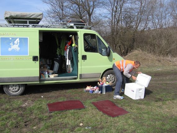One day follows the next; beautiful and sunny. By mid afternoon the temperature hovers around 20°C. In spite of this warmth we are wary in the early morning and at the end of the day because the temperature is chilly, especially at this altitude. Nature has not awakened from its winter sleep, and the trees are not yet in bud. There are a few timid birds around but not much chirping. It is only just the end of winter which, like everywhere in Europe, was severe this year. But this doesn’t keep Bertrand and Daniel from wearing shorts and a t-shirt.