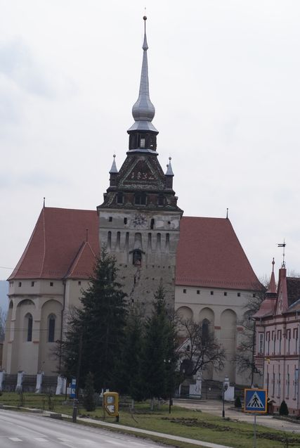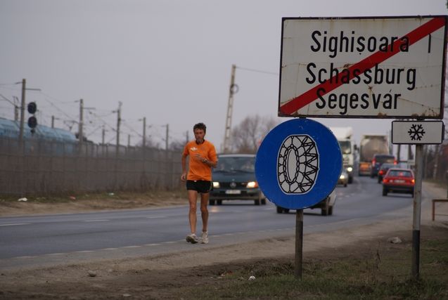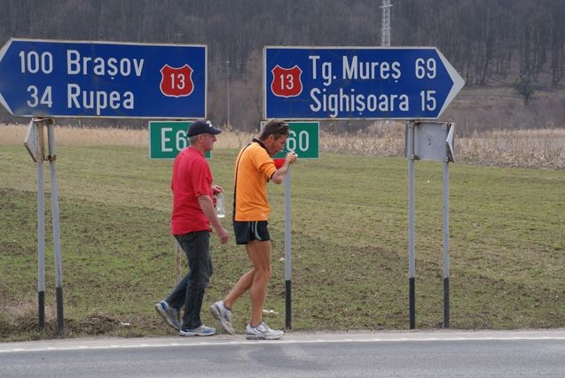 We arrived at the famous city of Sighisoara. The historical center, on a promontory surrounded by ramparts, is in the process of being renovated. This medieval city is a UNESCO World Heritage Site. Serge had a good day and at the first refueling he began joking with Bertrand and Daniel. He tells me he enjoyed the scenery the second part of the stage. Originally German, the villages has different appearance from what we have seen up to now. The sign to Sighisoara is tri-lingual: Romanian, German and Hungarian. Vive l’Europe!