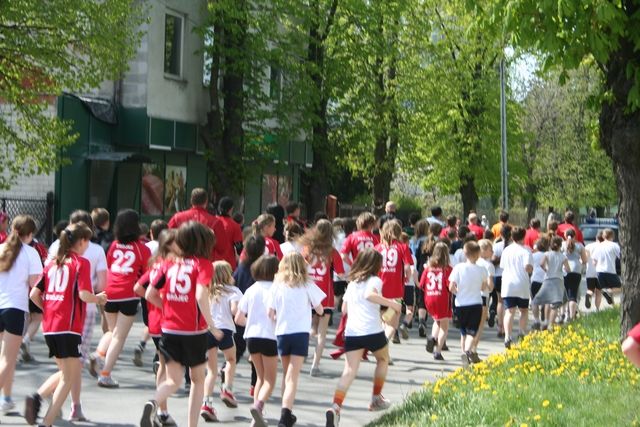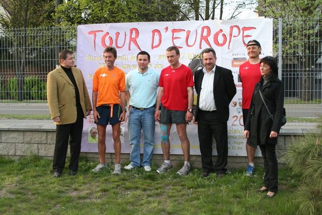 It was a day under the sign of school children, with a multitude of encounters. At km 10, we made a brief stop at the school of Mogielnica; the 6th grade students then accompanied the runners as they crossed the town. At km 15 and 20 students from the junior high school and the elementary school joined the group. Finally, in Grojec, Thomasz’s and Ewelina’s city, where the runners arrived with a police escort, the students from the kindergarten “Bajka” and the primary school, as well as a nearby elementary school all ran around the town. Angelika, an 8 year old girl who suffers from asthma and regarded growth is there. The “Biegiem Rezez Polske” Association, of which Jacek is president, supports this little girl and enables people to make donations directly to another association which arranges for the treatment of sick children. At the school in Grojec, we were able to meet Tomasz’s daughter. Our Polish friends were happy to be with their families and in their city.