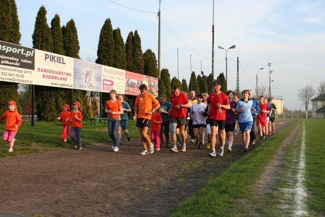 At the moment, Serge is in Raszyn, where our last meeting of the day will take place with children in a kindergarten and with some kids. After a run around the stadium, a soccer match took place for a few minutes between the runners and happy children, then Serge, who decided that his day had not been sufficiently long or busy, started running in the opposite direction: Tomasz and Jacek didn’t have time to say boo before they caught up with Serge, not thinking for a moment that they are dealing with a madman!