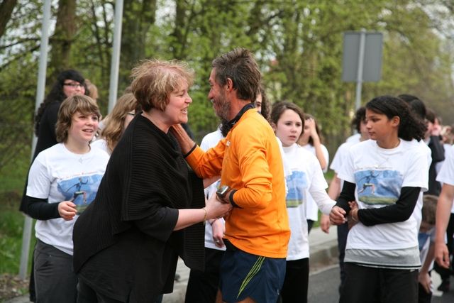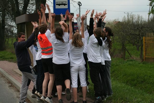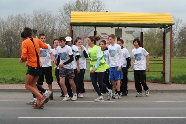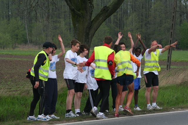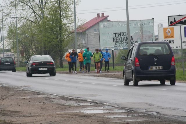 This extraordinary procession is escorted by the Pultusk Police Force, who at a moment’s notice, because it was given only 2 hours warning, made itself available to the group, thanks to the « dream collaboration » with the « Polske Team »: Paulina and Ewelina. We owe them our thanks for having made a complete success of what in advance looked like an impossible encounter on this very busy road. It enabled 42 young people to run with Jacek and Serge and everyone is delighted that his meeting is a triumph. This date of April 27 was planned more than 6 months ago and Serge arrived on time and almost without trying!