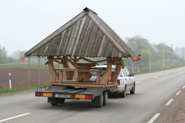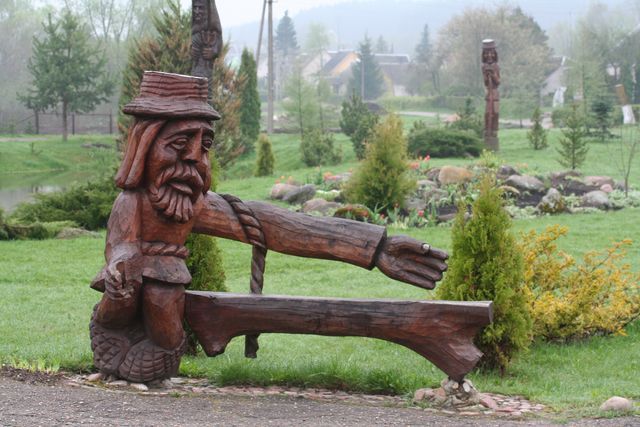 An orphan now, Serge continues on his course. The pain in his knee is back; it’s a love-hate relationship because one day it hurts, one day it doesn’t, etc., etc. I know it worries Serge, who talks about stiffness in his knee when he extends his leg. To end the day, the rain stopped and a ray of sunshine came to warm our noses. There is wood everywhere; in the forests, in the homes and in sculptures. The day after tomorrow we should discover Vilnius, the capital of Lithuania.