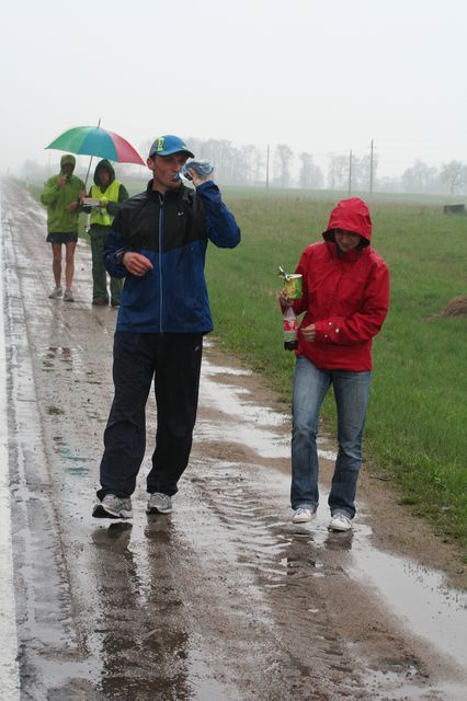 This morning, the drabness and the rain set the tone for our two tired runners. Serge trots, almost marking time and Jacek swings his arms as if to propel his body forward. His right thigh is painful again and he decides to stop the stage at 26.41 km, and reach his goal of 1,000km in 14 days and a bit. Except for the first day, of 66.63km and the 4th day of 26 km, Jacek did no other stage in less than 70 km. As the days passed, we noticed how his stride changed and became more economic. Jacek is normally a “fast” runner, clocking 3H02’ for the marathon and 8H57’ for 100km. For this third edition of the “Biegiem Przez Polske” for the first time, Jacek ran 1,000km during the course. We wish him lots of beautiful races in the future and no worries with his projects; his head is full of them.