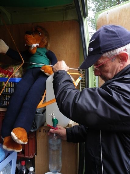 Good or bad weather on the Around the European Union Race? Both, Sir! The cold is almost Arctic at this end of May; only 3°C, and an icy rain falls from the clouds. Then, thanks to a north wind, at 2:00 PM the sky clears, giving us bright sunshine which warms the bones of Eliane and René, who are bundled in their jackets with hats screwed onto their heads. Serge removes some clothing and has only to face the headwind until the end of the stage, but at least with sunshine. There are always two ways of seeing things and since we have to put up with the weather we have, let us be optimistic and focus on the sunshine rather than the wind. I can hear Serge gnashing his teeth because the headwind is exhausting him!