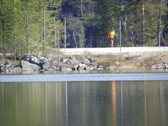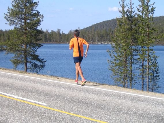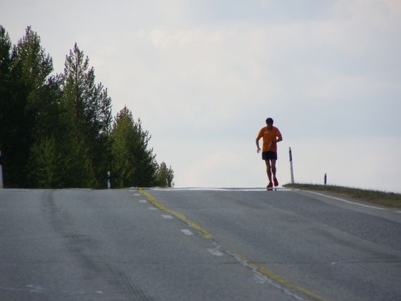 At km 8, the van, its occupants and Serge passed the famous village of Saariselkä. One of Finnish Lapland’s most important tourist sites, this village of 300 souls has a capacity of 13,500 beds. For the moment, it is as deserted as all the villages we have gone through these past days. Once past Saariskelkä, there is an incline which takes us down to an altitude of less than 200 meters and all vegetation almost disappears. False alert, the forest reappears as quickly as it disappeared.