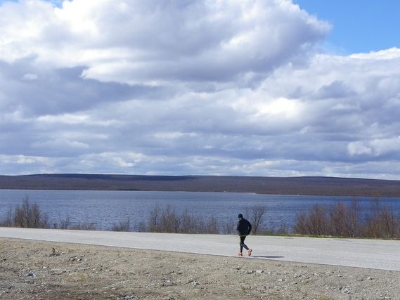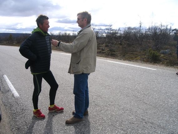 This morning a journalist from Karasjok came to see Serge on the road, saying that he was lucky. So why was he lucky, with a strong head wind that made progression difficult until km 37? Simply because at this time of year if it were not for this cold wind there would be swarms of mosquitoes and we would be overwhelmed. So, it’s better to cover up as if it were winter than to have to spray oneself with mosquito repellant. Eliane and René aren’t able to get warm all day….