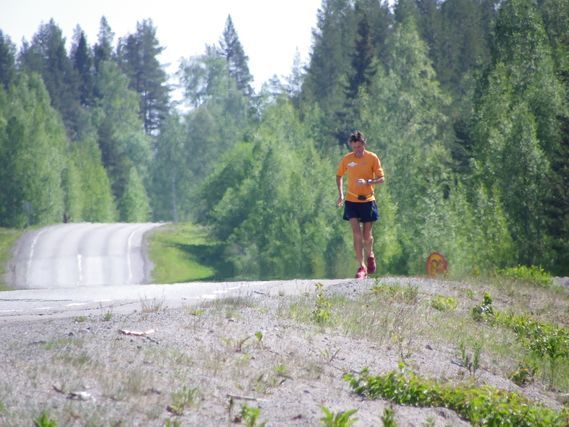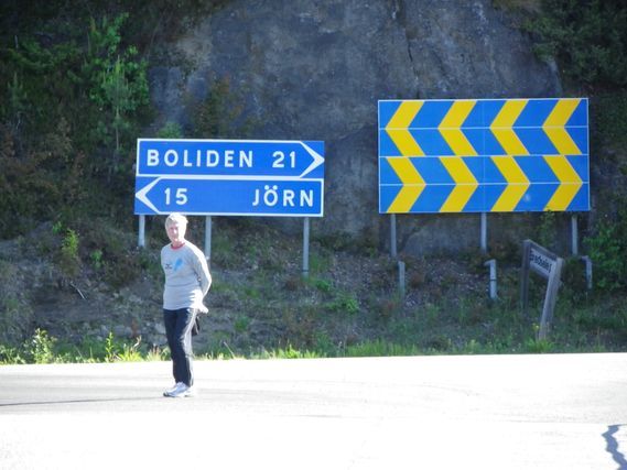 At km 40, we cross the small town of Norsjö, population 4,500. It’s a busy place; horns honk, we are waved at, drivers stop to take pictures of the caravan and we understand that Anette Novak’s article must have appeared in the daily newspaper, Norran (elk in Swedish). So I hurry to get the paper and sure enough, there is a full page dedicated to the Around the European Union Footrace. That is why we don’t go unnoticed…