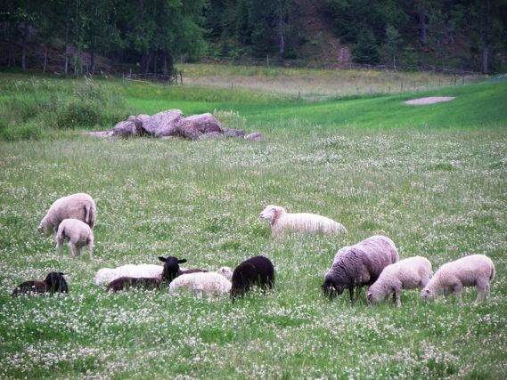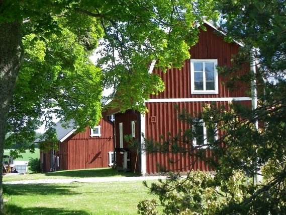 The wind comes up, a storm cloud pours rain on us, then the sun comes out and the rest of the afternoon is beautiful. Serge has no pain to complain about, which is lucky. We choose to take alternate routes on which we don’t see any cars. The countryside is green and peaceful, there are cows, sheep, huge barns which are always painted Falu red and most of the houses are the same color. From time to time there is a white or yellow house for a change. The wheat is already high, hay and silage are ready. Nature has changed in the space of one week.