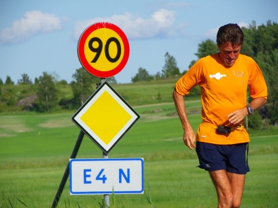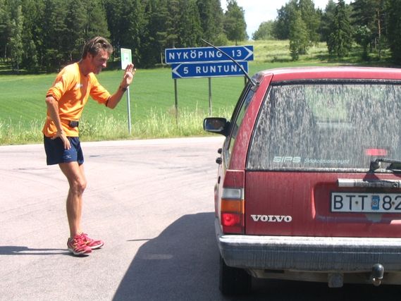 Serge is all red and says « I will go home tanned from my vacation » and adds « I can’t wait to get to Denmark because it is supposed to be flat. » Next to me as I write these lines, Serge is talkative, whereas he is quiet on the road, but he is letting off steam and likes to joke. He tells me “If I could run lying down I would spend more hours on the road.”