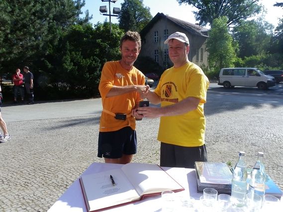 Our second stop was at the town hall of Reinickendorf-Berlin. After jogging 12 km the Mayor presented Serge with the municipality’s medal (his district) and each of us received a book.