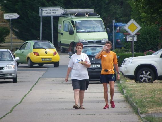 Daniel is behind the wheel of the van with Arlette while René and I play “advance guard” for a long day and a place to sleep 18 km from Zahna, and a finish point. Rather than losing time on the road in the car to reach the departure point in the morning, we have decided that Serge will leave tomorrow from Wittenberg, where we will sleep this evening. The itineraries for the successive stages will not necessarily be in a straight line, the important thing being for Serge to run his 74 km every day. For the past three days it has been the case and it will continue to be so when we return to France, where Serge will make a mini tour de France of almost 3,000 km, but we will not pass through Brive-la –Gaillarde!!!