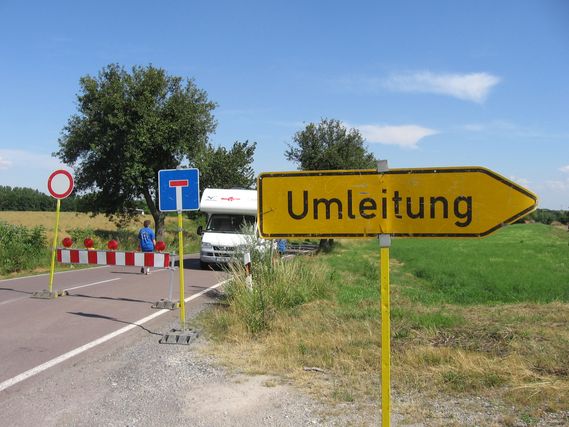 Yesterday was cooler (although it reached 25°C in the afternoon) but today the heat is back. The itinerary was not the easiest, with 3 detours, which forced us to take another route every time. Detour is “Umleitung” in Germany (there is nothing like being in a difficult situation to learn a country’s language) and the course is lengthened by 10 km. The extra kilometers are not a problem because Serge pursues them; the problem is the danger on certain portions of road, such as the one today between Asleben and Belleben, which we would not have taken if we had been able to stick to our planned route.
