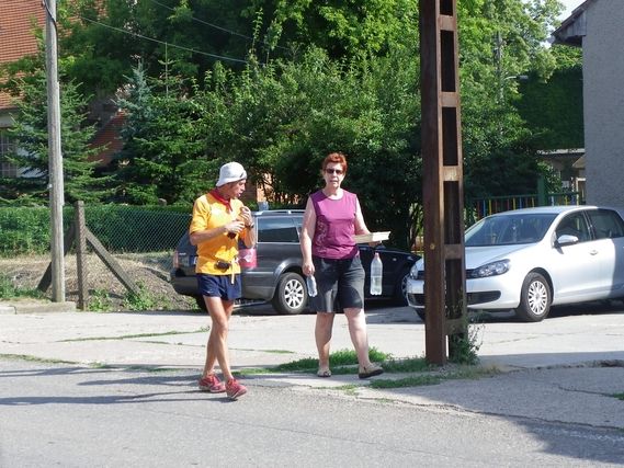 The weather continues to be beautiful and hot (35°C this afternoon) and when a breeze blows over the dales the heat is bearable. It is less so when you are on the plain and on our approach to Erfurt it is suffocating. We skirt this city to the north; the traffic at the end of the afternoon is intense and because there are no bicycle paths progress is dangerous for our runner. At km 50, he lies down for a few minutes in the “green submarine” because he doesn’t feel well. The stress of the road takes its toll and his constant vigilance drains his energy. From early morning, Serge is again wearing his bandana and hat and he drenches his head at each refueling, every 5 km. He is eating well and nothing has changed for the past few days, except that the discomfort of the roads today is particularly intense.