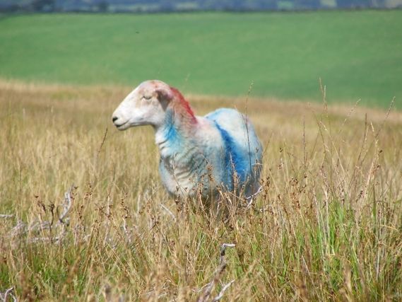 It was indeed a beautiful day. There is greenery everywhere and the secondary roads are still winding and narrow. The hills are not cultivated and serve as pasture for sheep and occasionally cows. As opposed to Scotland, there are no stone walls but hedgerows, which give a woodland air to the scene. There is an occasional tree and sometimes domes of grass and heather reach an altitude of 400 meters where sheep graze and which offer unbroken panoramic views.