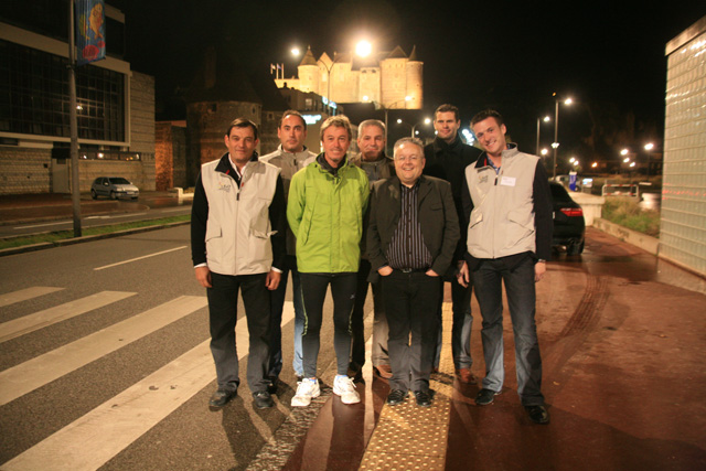 Ce matin un levé à 2H15’ pour un départ à 3H00 devant le Casino de Dieppe au pied du château. Jacky de St Paul de l’Oise et Arnaud de Montaure dans l’Eure attendent Serge et sont à pied d’œuvre prêts à accompagner Serge. Nos amis du CJD de la section de Dieppe sont là : Franck, Yves et les autres…