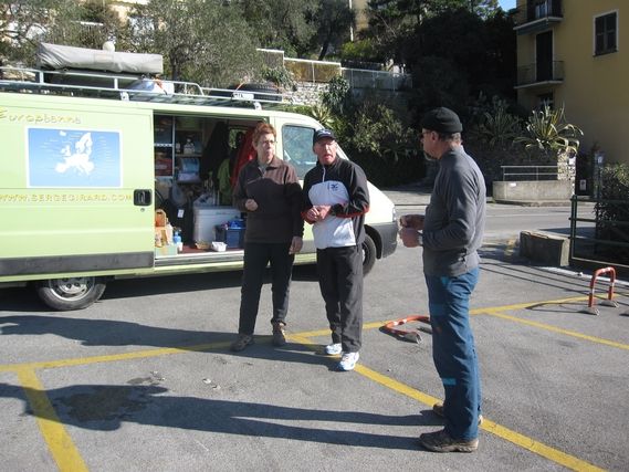 Sestri Levante sera également le changement d’un parcours initialement prévu le long de la route SP1 car après 13km en direction du col del Bracco, la route est close. Les routes de bord de mer beaucoup trop étroites et pleines de tunnels, nous font opter en catastrophe pour un itinéraire bis en direction de Varese Ligure avant de reprendre une petite route transversale pour atteindre un autre col, au 65ème kilomètre à 650m, 15 km pour passer du niveau de la mer à cette altitude sans compter les bosses de la première partie de journée et Serge qui ne se plaindra même pas du dénivelé ! Il y a quelques jours de cela, mon cher et tendre me disait « En Espagne, j’ai été à la bonne école question bosses ».