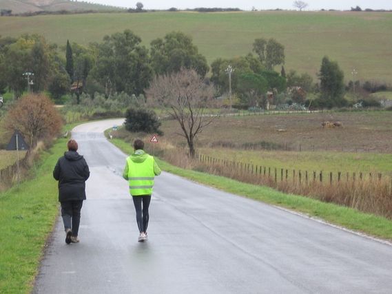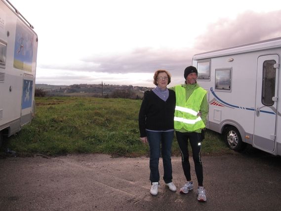Au départ avec Brigitte en arrière plan Magliano in Toscana