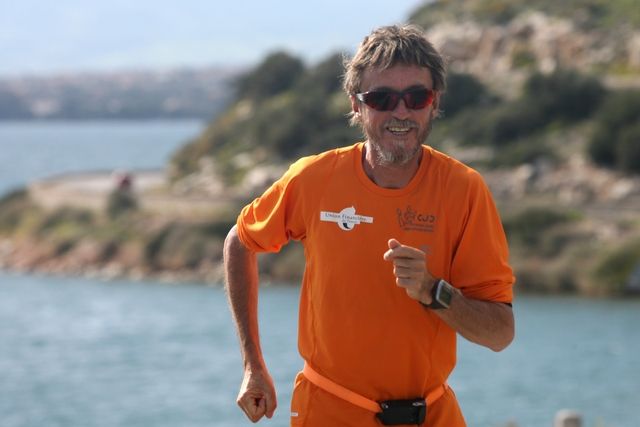A l’approche d’AthènesDe bon matin, Serge passe l’isthme de Corinthe. Cette fine tranchée de plus de 6km de longueur, creusée par la main de l’homme entre 1881 et 1893, nous apparaît bien étroite pour laisser passer pas moins de 12500 bateaux à l’année. Le soleil donne et Serge s’enduit de crème solaire, pour la première fois depuis notre départ, toute l’équipe a d’ailleurs bonne mine et il semble que la météo, nous indique beau temps au moins jusqu’à dimanche. Tant mieux, car demain, Serge traversera la capitale, petite agglomération de 3 millions d’âmes qui regroupe un tiers de la population du pays. René et moi-même avons eu l’occasion de la traverser de part en part, et ce ne sera pas le plus compliqué !La difficulté majeure ne consistera pas à trouver de quoi loger 7 personnes, mais de quoi stationner notre gros camping-car et le fourgon. Cela devient un exercice de style qui nous vaudra bien des péripéties et des heures à tourner et tourner encore. J’ai même crû que nous allions passer la nuit à tourner !Ce soir, Florent et Bertrand sont bien arrivés après moults coups de téléphone, beaucoup de temps passé sur internet, pas mal de stress. Ouf, les voilà et le voyage s’est bien passé. La journée du fourgon et de ses occupants, Daniel et Thomas, s’est bien déroulée. Une route simple jusqu’à Elefsina, puis quelques changements de directions pour retrouver la route de la zone industrielle, peu engageante. Le paysage fut varié, entre corniche au bord de mer, quelques traversées de villages, où Daniel et Thomas ont même acheté un demi poulet grillé, alléchés par l’odeur, et dans un autre domaine d’odeur moins agréable, quelques kilomètres au travers des raffineries de Agii Theodori et de l’entrée de Elefsina. Non, franchement, ça ne sent vraiment pas bon !Quant à Serge, il poursuit son bonhomme de chemin, plus rapide que prévu, ou bien ce sont les kilomètres qui sont plus courts ! Nous voici ce soir aux portes d’Athènes et demain, Jean-Pascal et quelques coureurs athéniens, viendront courir une partie de l’étape avec Serge. Nous devrions toucher Marathon demain soir et la journée promet d’être longue.