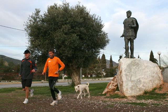 Ce matin, nous quittons l’hôtel de M. Kostas qui en son temps fut 3 fois champion de Grèce Junior sur 5000m et 10000m, et qui est un amoureux du sport. Il nous a offert un livre qui retrace l’histoire du Marathon, dont voici un petit condensé.