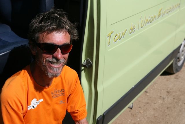 L’équipe s’est agrandie avec l’arrivée de Bertrand, qui s’est tout de suite mis dans le bain, « coaché » par nos deux « anciens », devenus de vrais routiers. Ce soir, nous campons, et nous nous régalerons de 2 bons camemberts que Bertrand nous a apportés, cela soulagera le fourgon d’une forte odeur à chaque fois que nous ouvrons notre glacière. Durant les 4 nuits que nous passerons à 7 personnes, je n’avais pas prévu de campement, car il faut arriver à caser tout le monde pour dormir, mais finalement, nous sommes parés et tout le monde trouvera un lit, bon,… reste à savoir demain. Toutes nos nuits en campement en Grèce, ont été bercés par l’aboiement des chiens qui semblent inlassables, nous espérons que cette nuit sera calme en surplomb de l’autoroute !