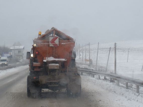 La journée fut très longue pour Serge, plus de 11H00 sur la route, en fin d’étape, son visage est violet et ses yeux injectés de sang. Serge ne réchauffe pas. Le terme éprouvé est un piètre mot. Ce soir, je propose une option pour le parcours de demain, que tout le monde approuve : Serge ne repartira pas demain matin de son point d’arrêt, de fin d’étape mais 8km plus loin. La route est en mauvais état, les véhicules slaloment entre trous et décaissements de goudron, il n’y a pas de bas-côté pour courir, les congères de neige envahissant jusqu’à la chaussée et la route est très étroite. En définitive, tout le monde est soulagé, car effectivement personne dans l’équipe ne voyait Serge marcher ou courir sur cette portion de E79, sauf Serge, qui n’est plus en état de remarquer grand-chose.
