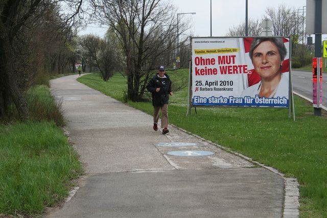 Concernant un autre sujet, Serge au 5ème kilomètre, a une pensée pour tous les coureurs qui vont participer ce matin au marathon de Paris. Dimanche prochain, place au marathon de Vienne, et nous ne pouvons que nous réjouir de passer par là une semaine avant ce rush de course à pied populaire qui bloque toute une ville. La semaine suivante, le 25 avril, auront lieu les élections présidentielles en Autriche, une femme est en liste. Ce jour, en Autriche avait lieu le marathon de Linz.