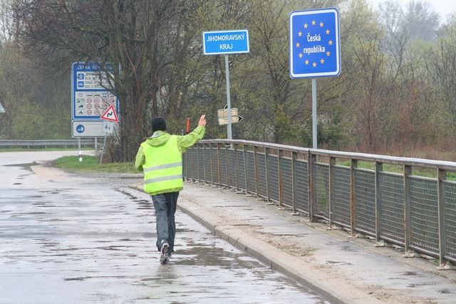 René et moi devançons l’équipe pour rentrer en Tchéquie, nous sommes surpris de voir une forte présence policière, partout : dans la ville pour le mauvais stationnement, et sur les routes pour les patrouilles, pourtant la frontière n’existe pas et l’absence de guérites ou de structures en dur, semble indiquer qu’il n’y a jamais eu de poste frontière. Un panneau au milieu d’un pont marque le changement de pays.