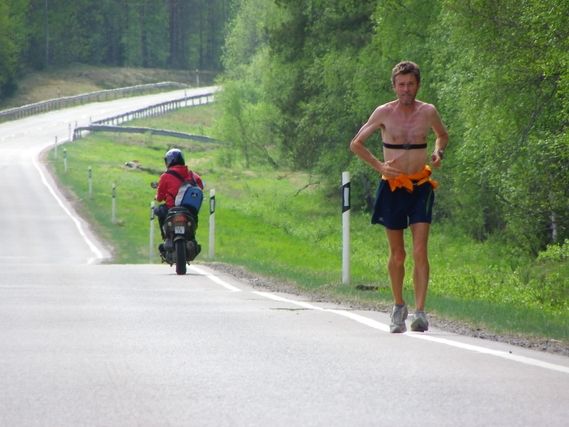 Aujourd’hui, Serge a mal, mais Serge avance. « J’ai envie d’en finir au plus vite, à 16H30’ je termine l’étape, à 15H00 je suis couché ». Ne cherchez pas l’erreur, c’est de l’humour à la Serge. Effectivement, l’étape sera vite expédiée, en cette veille de week-end, la circulation va devenir infernale à partir de 14H00 sur cette fameuse route 86, dont Serge n’est pas arrivé à bout. Il lui reste encore un peu plus de 4km demain matin, avant de changer de direction et d’emprunter la Nationale 8, avant de bifurquer à nouveau 6km plus loin sur la route N° 847, que nous suivrons jusqu’au centre-ville de Oulu. Le vent est intense en cette fin d’après-midi, l’air nous vient du golfe de Botnie, nous sommes au bord de la mer Baltique. Serge appréhende déjà sa journée de demain à cause du vent, espérons qu’il ne l’aura pas de face, si celui-ci ne se calme pas.