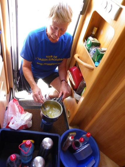 Hier soir, Eliane a offert “son coup” en l’honneur de l’anniversaire de son fils aîné, Laurent, qui fêtait ses 43 printemps. Nous avons donc trinqué à sa santé et bien sûr, comme tous les soirs, à l’étape du jour. C’est devenu une coutume sur le Tour d’Europe. René et Serge ont essayé de se remémorer, ce qu’ils faisaient jour pour jour, il y a 43ans, tandis qu’Eliane était à la maternité.