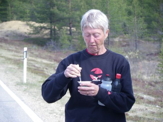 Serge apparaît moins fatigué qu’hier malgré le fait qu’il ne dira que peu de mots dans sa journée de course, à part le sempiternel « merci » lors des ravitos. Comme dit René, mâcher lui demande déjà des efforts alors parler !!!