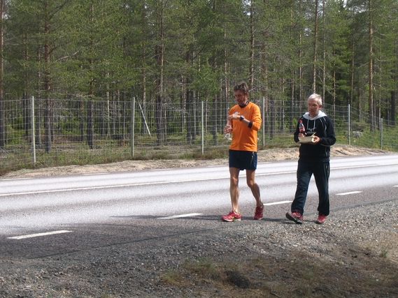 Au 7ème kilomètre, Serge est à Tornio. Dans cette ville, la frontière est une ligne imaginaire, si vous ne passez pas la route principale E4 : aucun panneau, aucun poste, rien si ce n’est un gros magasin IKEA, qui trône juste à la frontière du côté suédois. Haparanda, ville suédoise, se juxtapose à Tornio sans réelle distinction. Et pourtant, en Suède l’heure change, nous gagnons une heure par rapport à la Finlande et nous aurons désormais la même heure qu’en France. La monnaie change aussi, l’euro est remplacé par la couronne suédoise : 1€ = 9,43 SEK, ce matin à la banque.