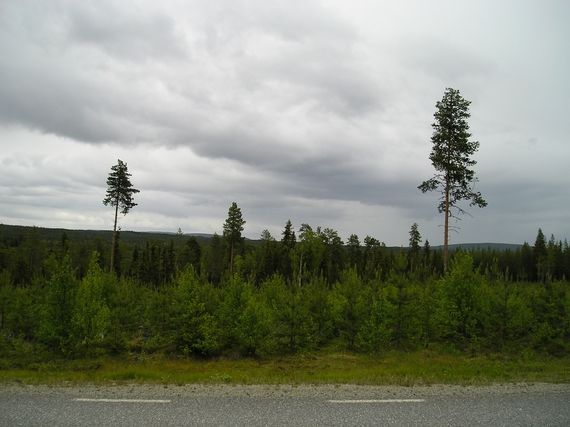 Le paysage est peu varié, et excepté Asele que nous contournons et quelques maisons dispersées, nous croiserons peu d’âmes qui vivent. Anette avait expliqué à Serge que les forêts sont peuplées d’ours. Au camping de Asele, où nous dormirons ce soir, une photo est affichée d’une maman ours avec 3 petits qui traversent la route, c’est une photo qui a été prise non loin de la ville et le propriétaire du camping, qui est « musher », me confirme que, lorsqu’il sort avec ses chiens, cela lui arrive de voir des ours. Nous allons donc guetter attentivement, mais tout comme les élans, c’est plus l’hiver que ces animaux se rapprochent des habitations. L’été, la nourriture est facile à trouver dans les profondeurs de ces immenses forêts.